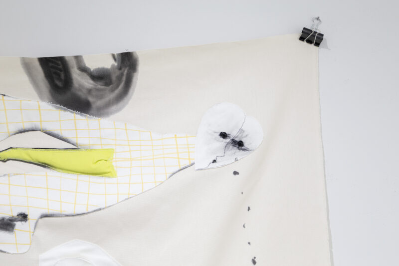 コラージュするとき接着剤で素材を貼り合わせると、再び剥がせばそれぞれが破れたり裂けたりする。しかしミシンで縫い合わせれば、糸さえ切ればあまりお互いが傷つかずに離れる。何度も作品をつくり直しながら制作していくわたしにとって、これはありがたい。