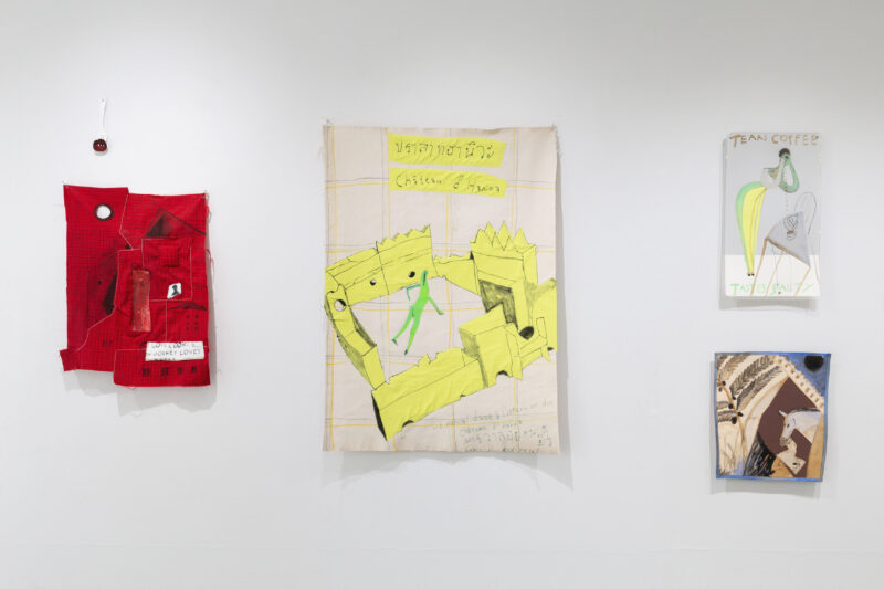 縫い始めたきっかけは描かれたキャンバスのコラージュだった。子どもたちが学期始めに持っていく雑巾やカーテンは作っていたから、ミシンは持っていたし使えなくはなかった。でもそのくらいの技術しかない。