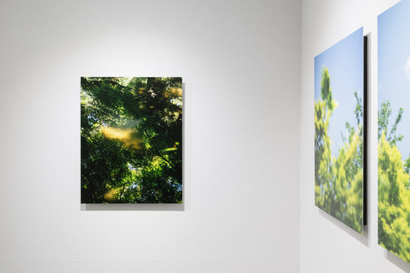 私がシャッターを切ると、液晶ファインダーの中で世界は一瞬、静止します。しかし、ファインダーから目を離すと、さきほどまで光を受けてきらめいていた葉は、風に吹かれて遠くへと散っていきます。次の瞬間、足もとの苔を包む柔らかな光に目が触れ、そしてまた、遠くの森へと視線が移っていきます。